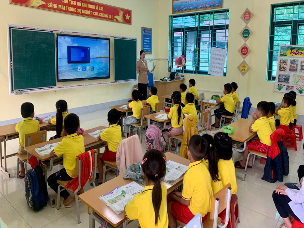 Đặc biệt, các bé còn được tham gia vào một tiết học thử trong lớp 1 với sự hướng dẫn tận tình của cô giáo tiểu học. Các bé được ngồi vào bàn ghế học sinh, làm quen với sách vở, bảng đen, và trải nghiệm một số hoạt động học tập thú vị như vẽ tranh, làm toán đơn giản, đọc chữ cái… Nhiều bé tỏ ra vô cùng thích thú và không ngần ngại giơ tay phát biểu ý kiến.